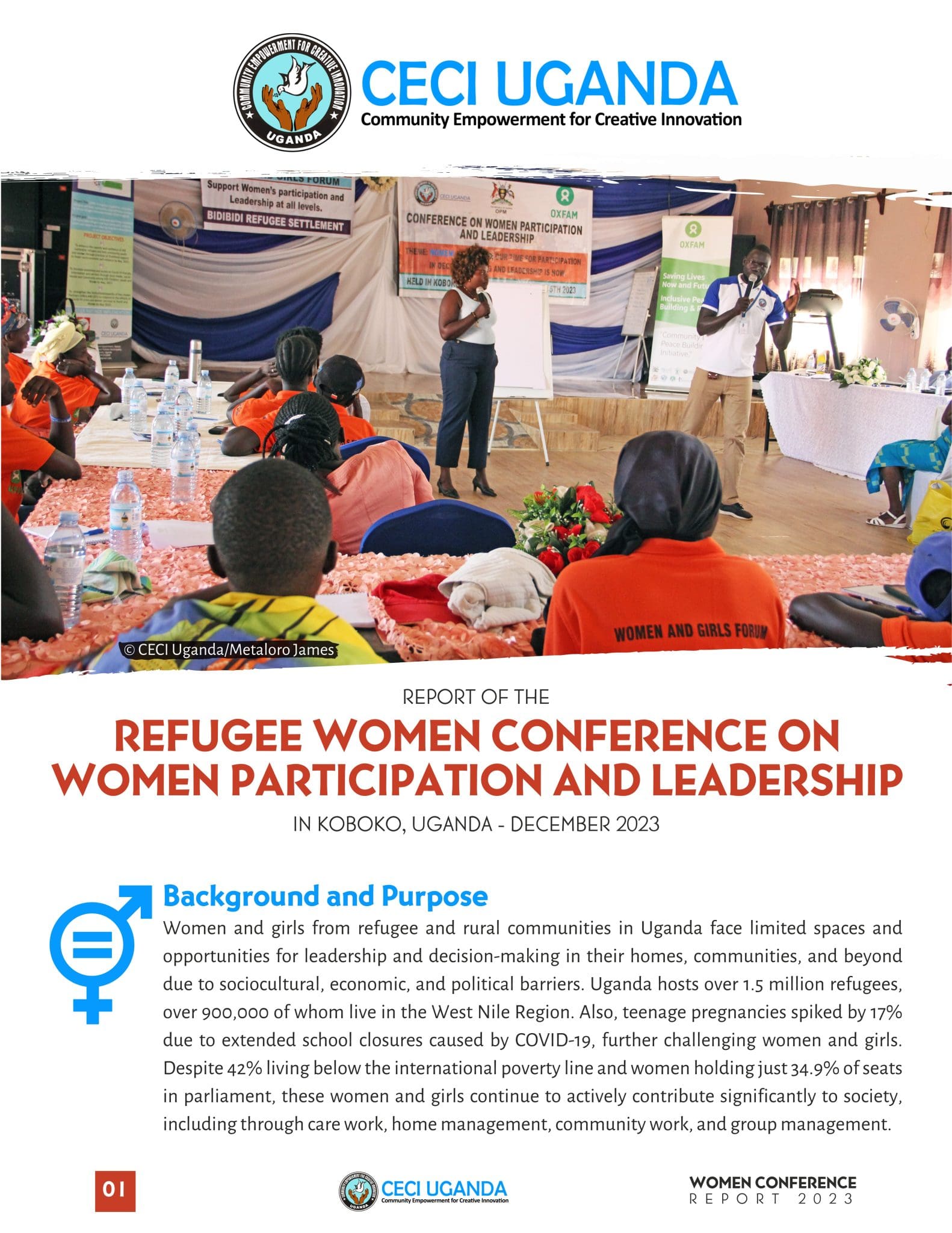 Check out CECI Uganda‘s report of the Refugee Women Conference on Women Participation and Leadership, which we organized in Koboko, Uganda, on December 5, 2023, in partnership with OXFAM, with funding from DANIDA. The conference was a platform for women from both refugee and host communities of Imvepi and Bidibidi Refugee Settlements to come together, share experiences, and develop practical strategies for tackling the social, economic, and political barriers they face.