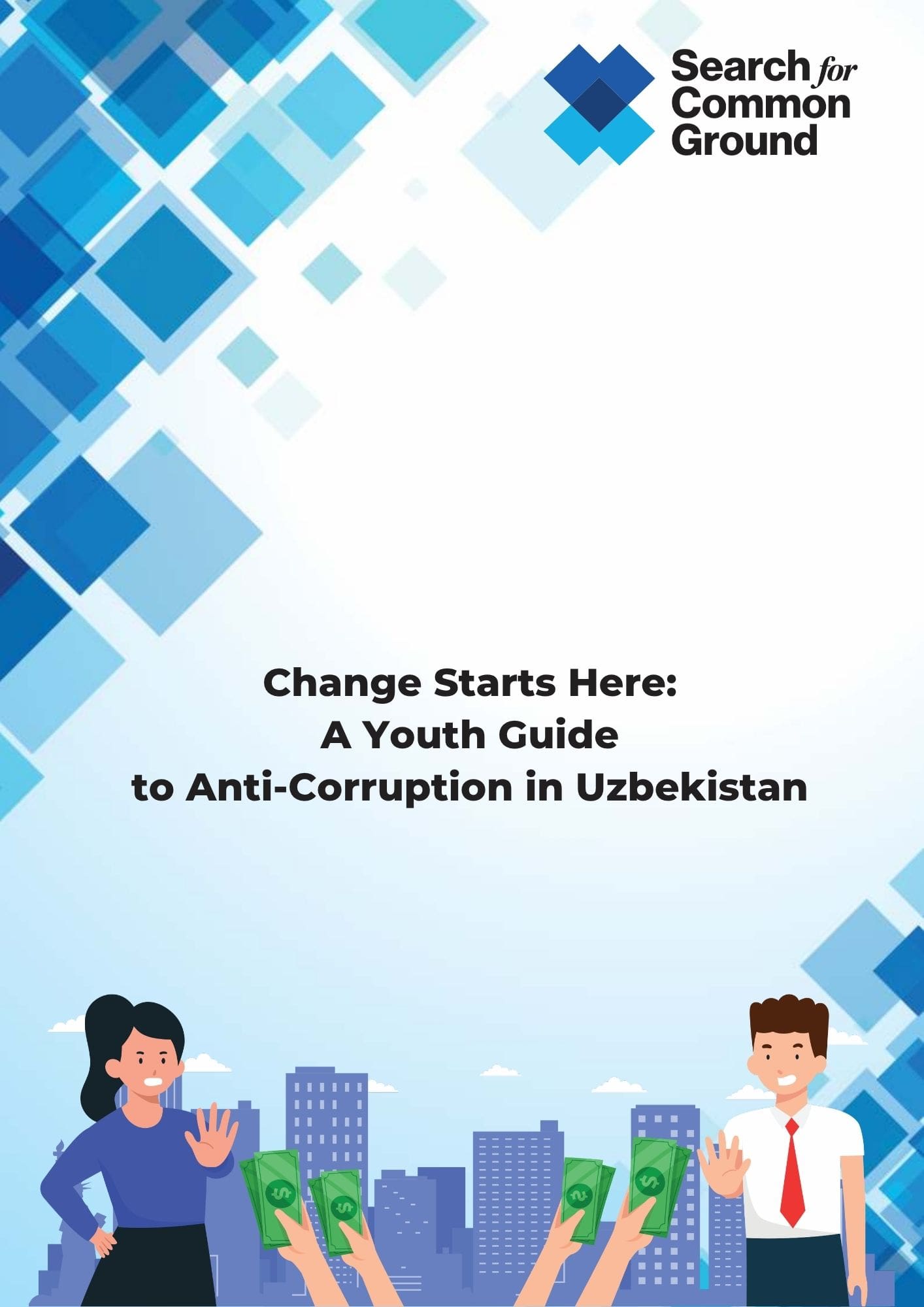 Change Starts Here: A Youth Guide to Anti-Corruption in Uzbekistan,” was developed within the scope of the #YoshXabardor: Youth Against Corruption project, implemented by Search for Common Ground in partnership with Yuksalish Movement and funded by the U.S. Department of State. The project builds practical skills among youth to strengthen youth–government collaboration in anti-corruption by deepening young people’s understanding of corruption, equipping them to detect and report corrupt practices, fostering engagement between target youth and national state entities on policy change, and reinforcing anti-corruption mechanisms. This guidebook reflects the project’s participatory, evidence-based approach and seeks to empower youth as agents of positive, lasting change in their communities.