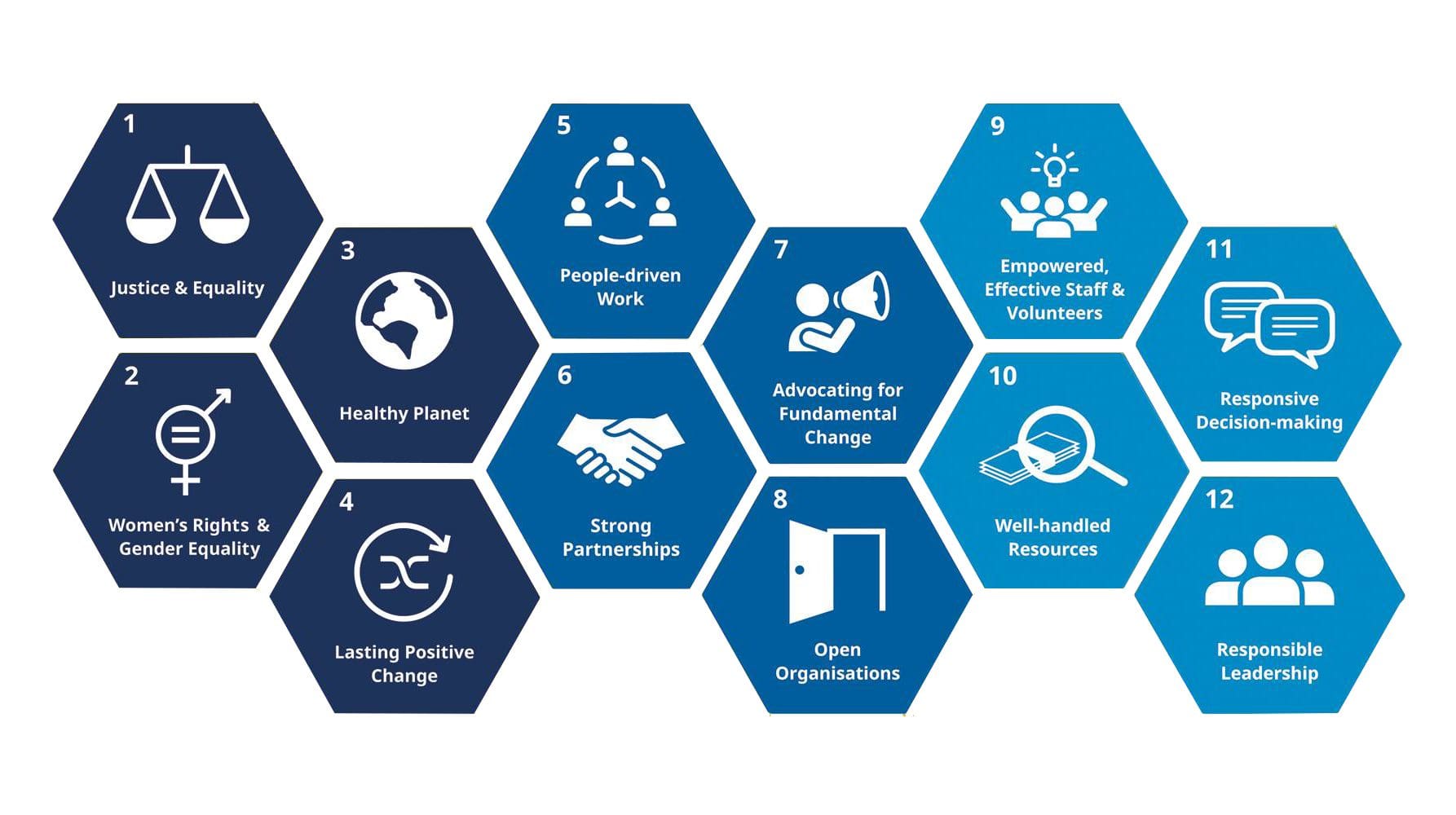 The Global Standard 12 Commitments is an accountability reference framework that will support organisations in that journey. The framework is free, flexible and open-sourced for CSOs wishing to improve their accountability practices towards all stakeholders, moving away from a tick-box exercise. The 12 Commitments are divided into three clusters, addressing the following areas: What We Want to Achieve, Our Approach to Change, and What We Do Internally. Together, the clusters guide CSOs to transform their accountability practices by putting the people that they work for and with at the core of their work. The 12 Commitments were co-created through extensive rounds of consultations with local organisations by 9 accountability networks around the world who are also Global Standard Partners (Accountable Now – Secretariat, ACFID, BCSDN, CCC, DENIVA, InterAction, Rendir Cuentas, VANI, Viwango). It is a universally valued set of guiding principles for CSOs to base their organisational accountability practices on, enabling CSOs to adjust the implementation according to their contexts and needs.